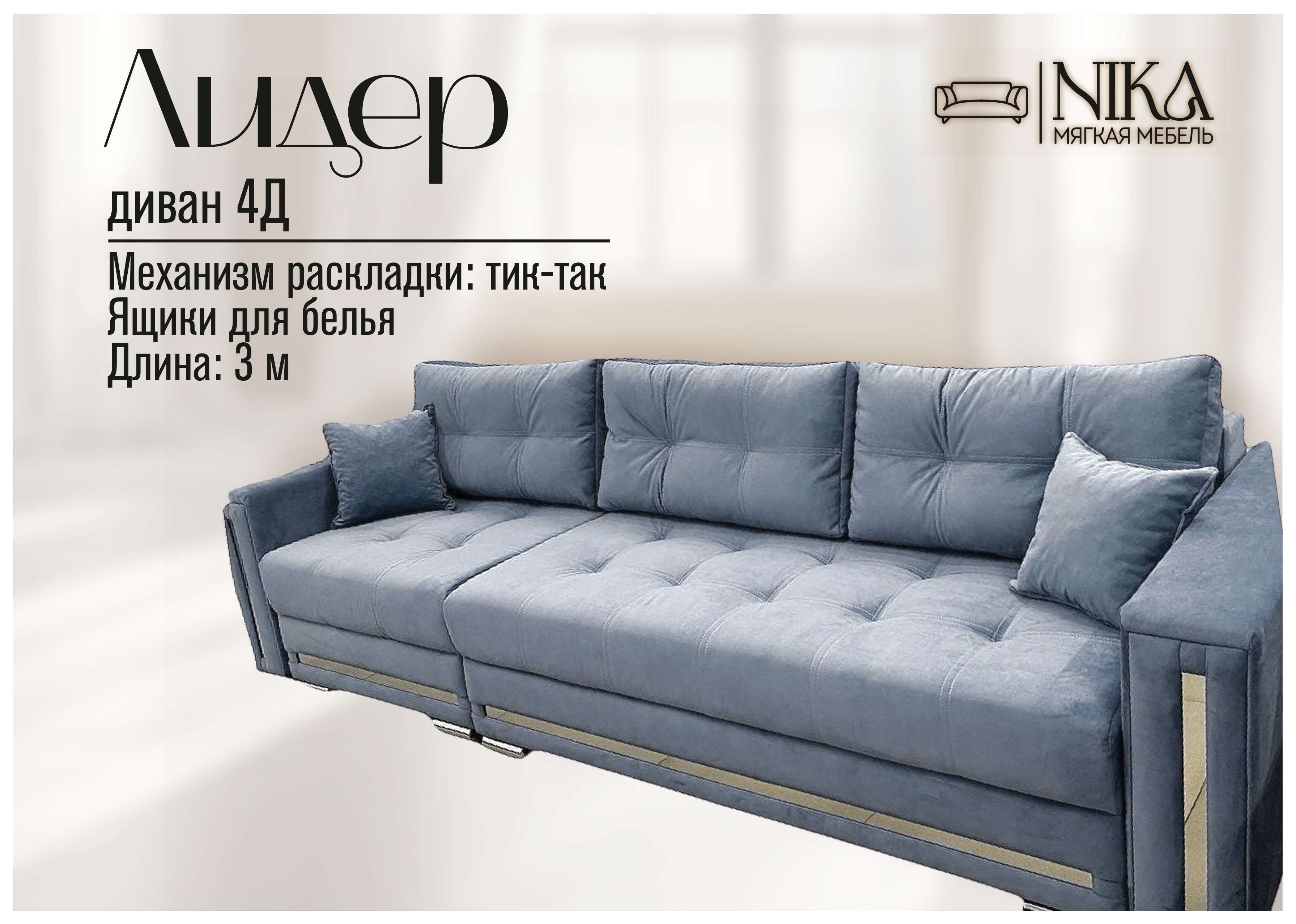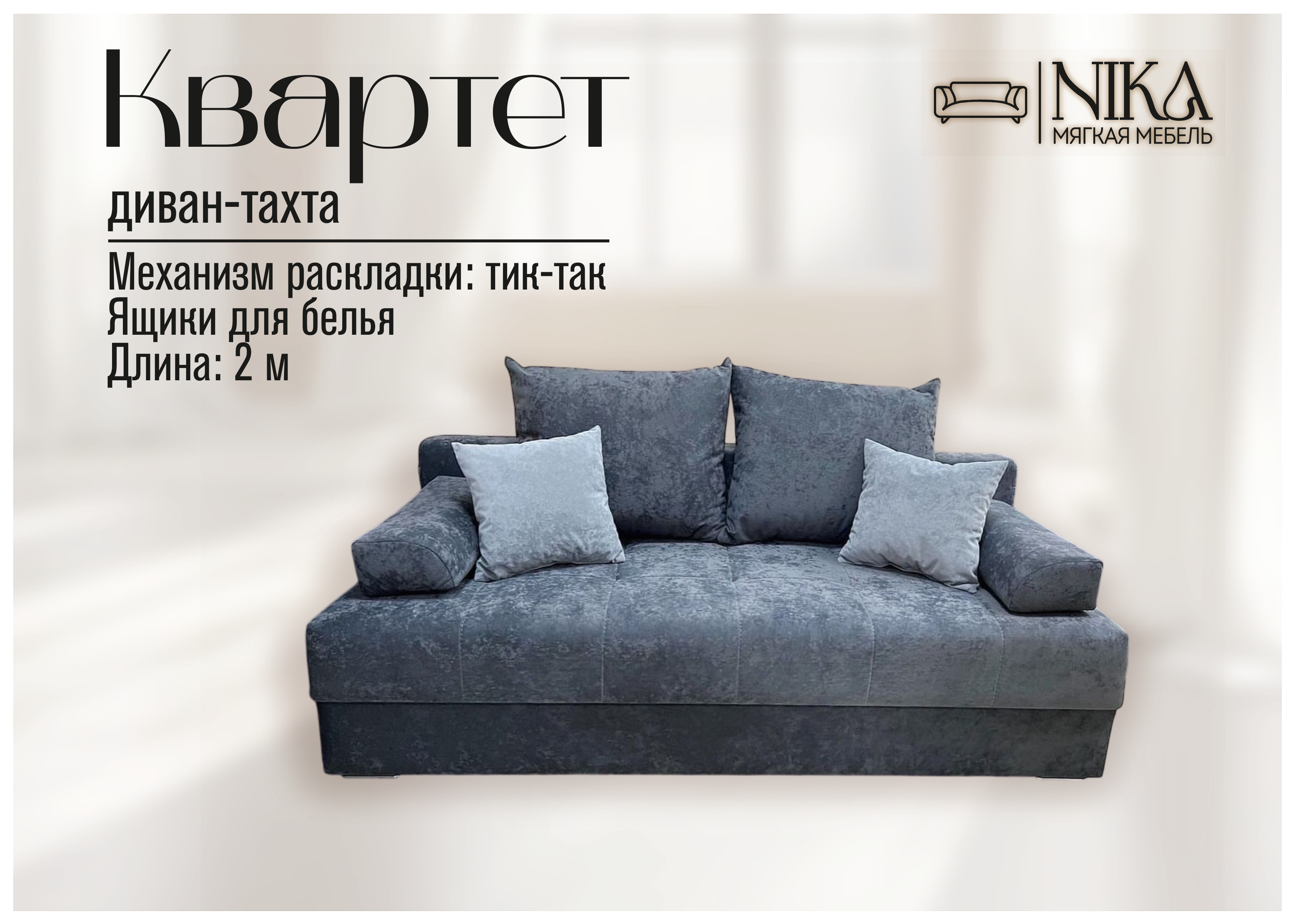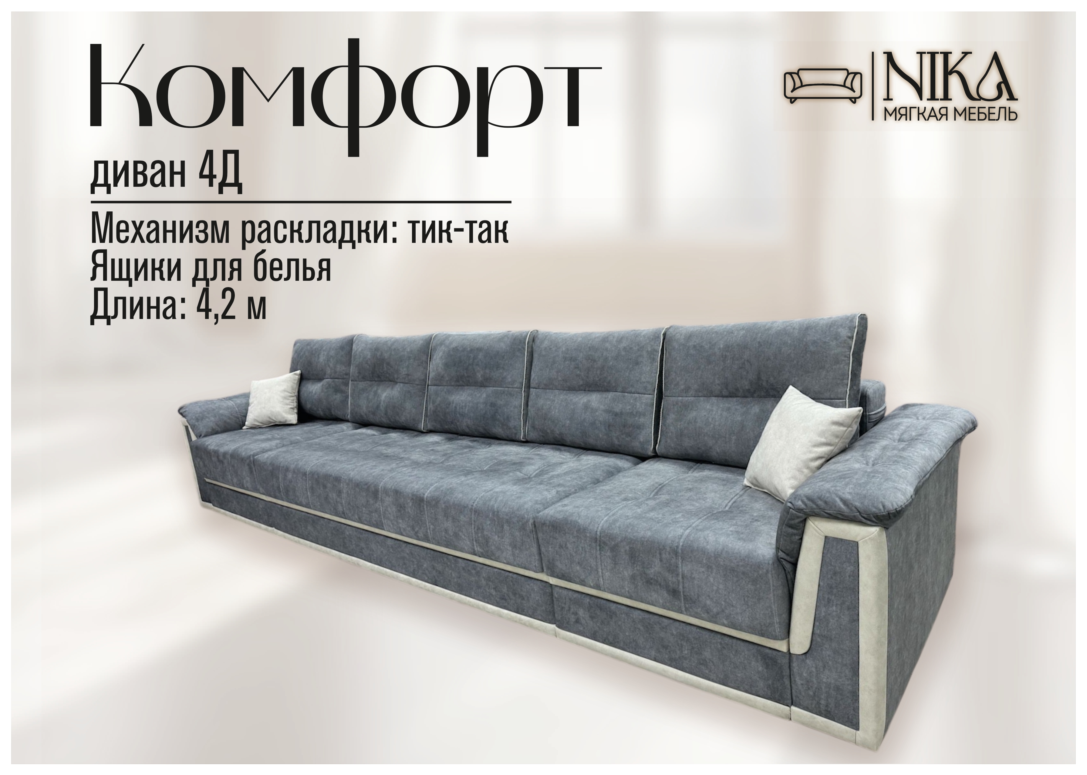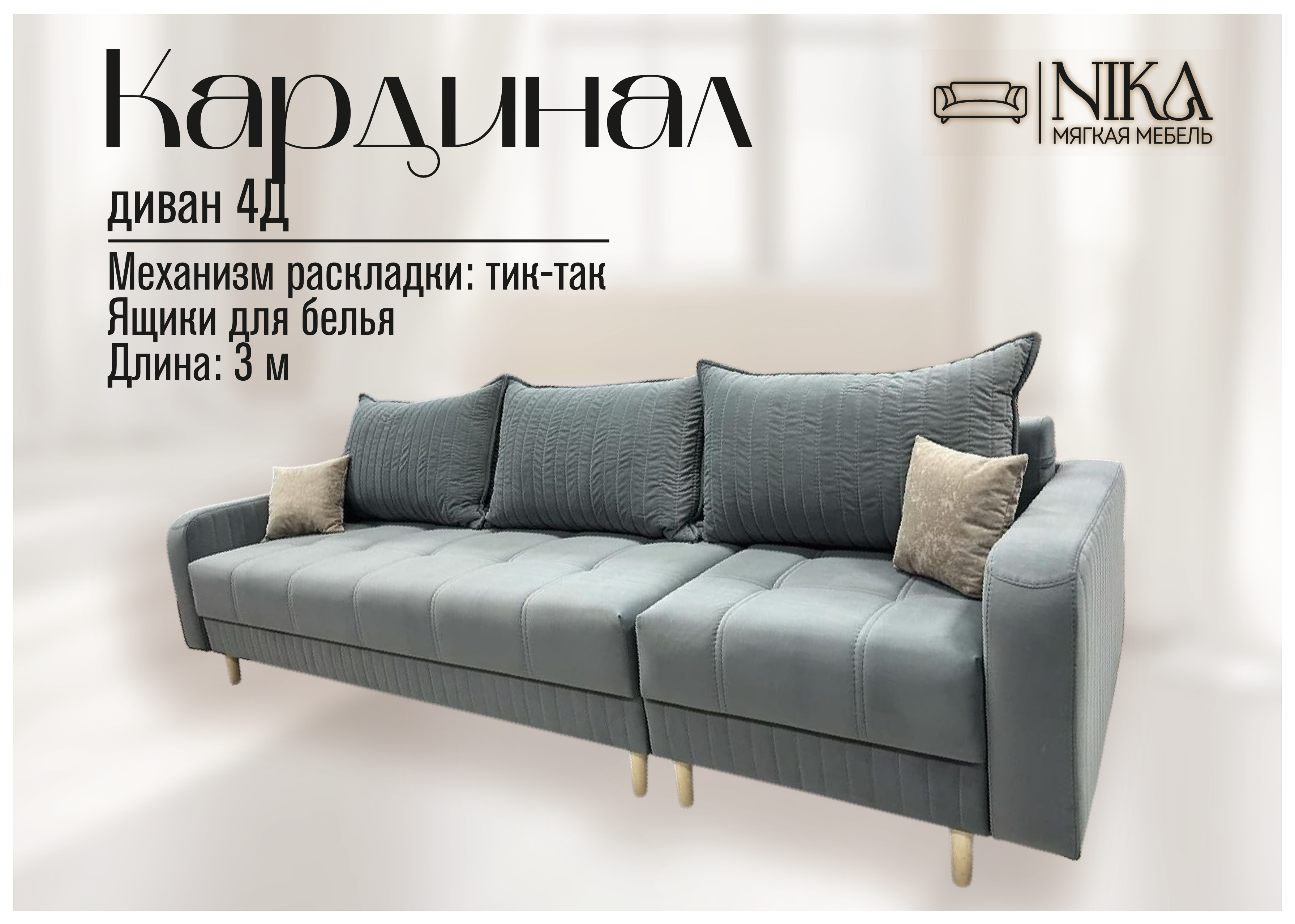 Мы, уверены в качестве - диван прослужит долго без скрипов и не приятных сюрпризов