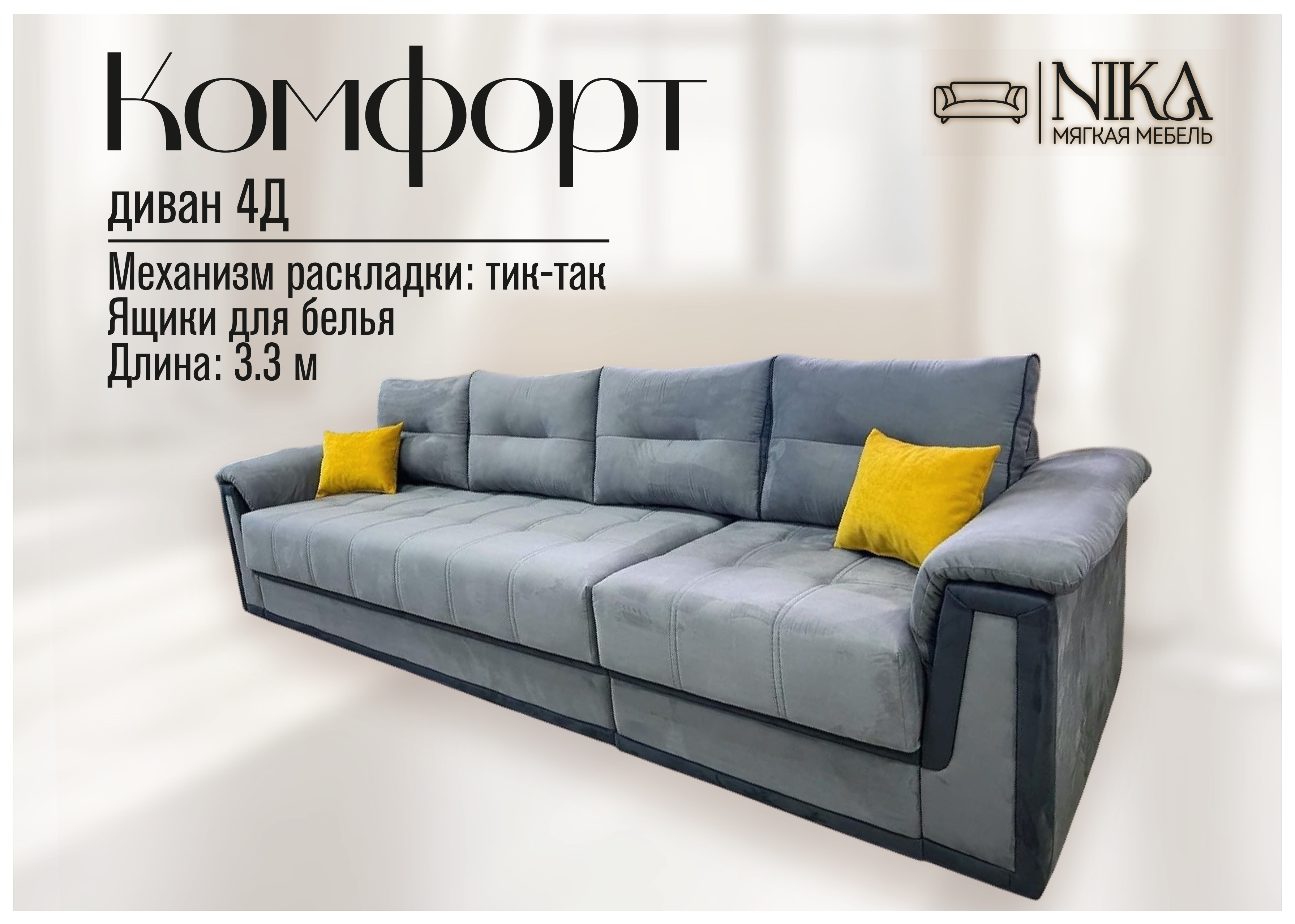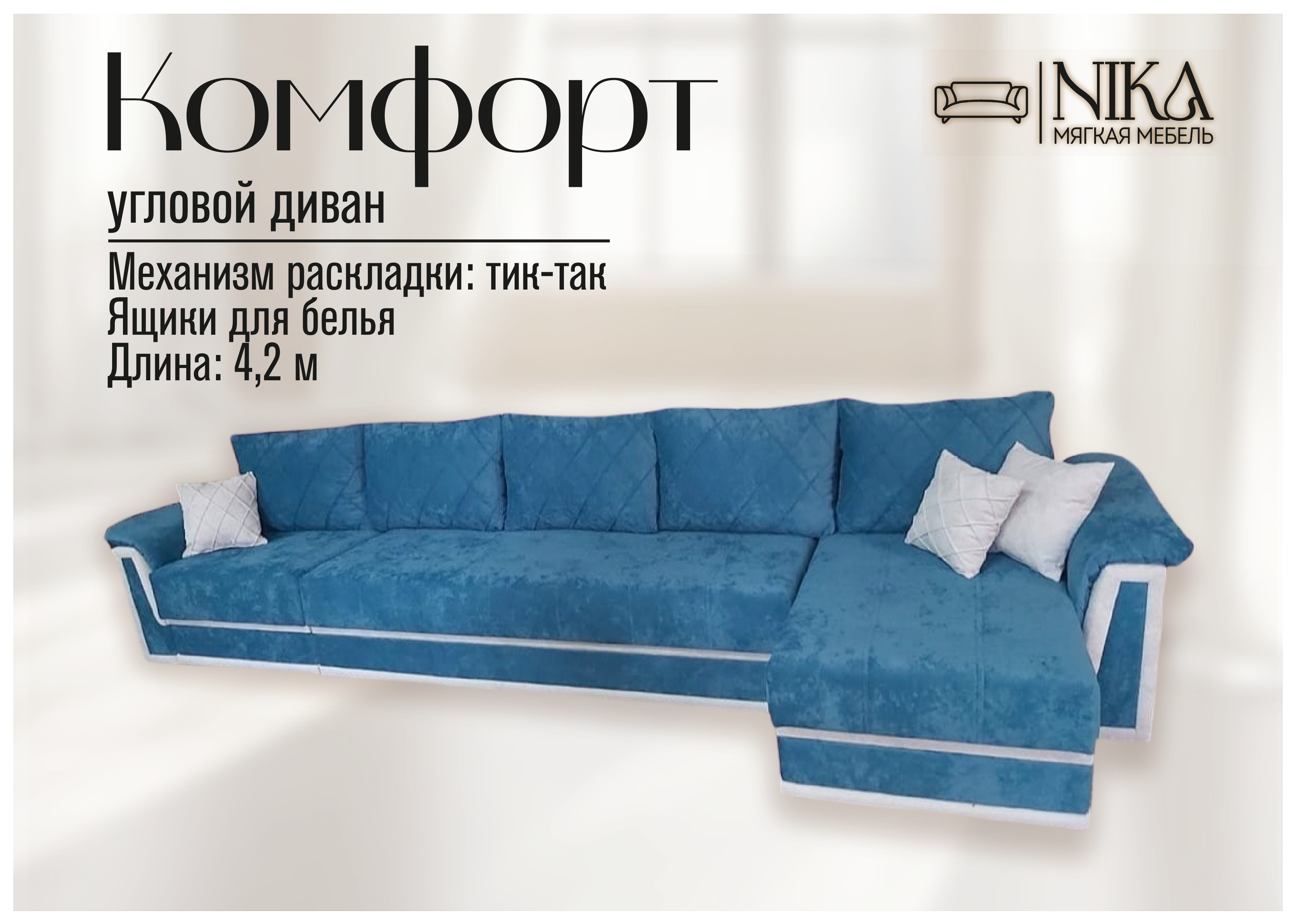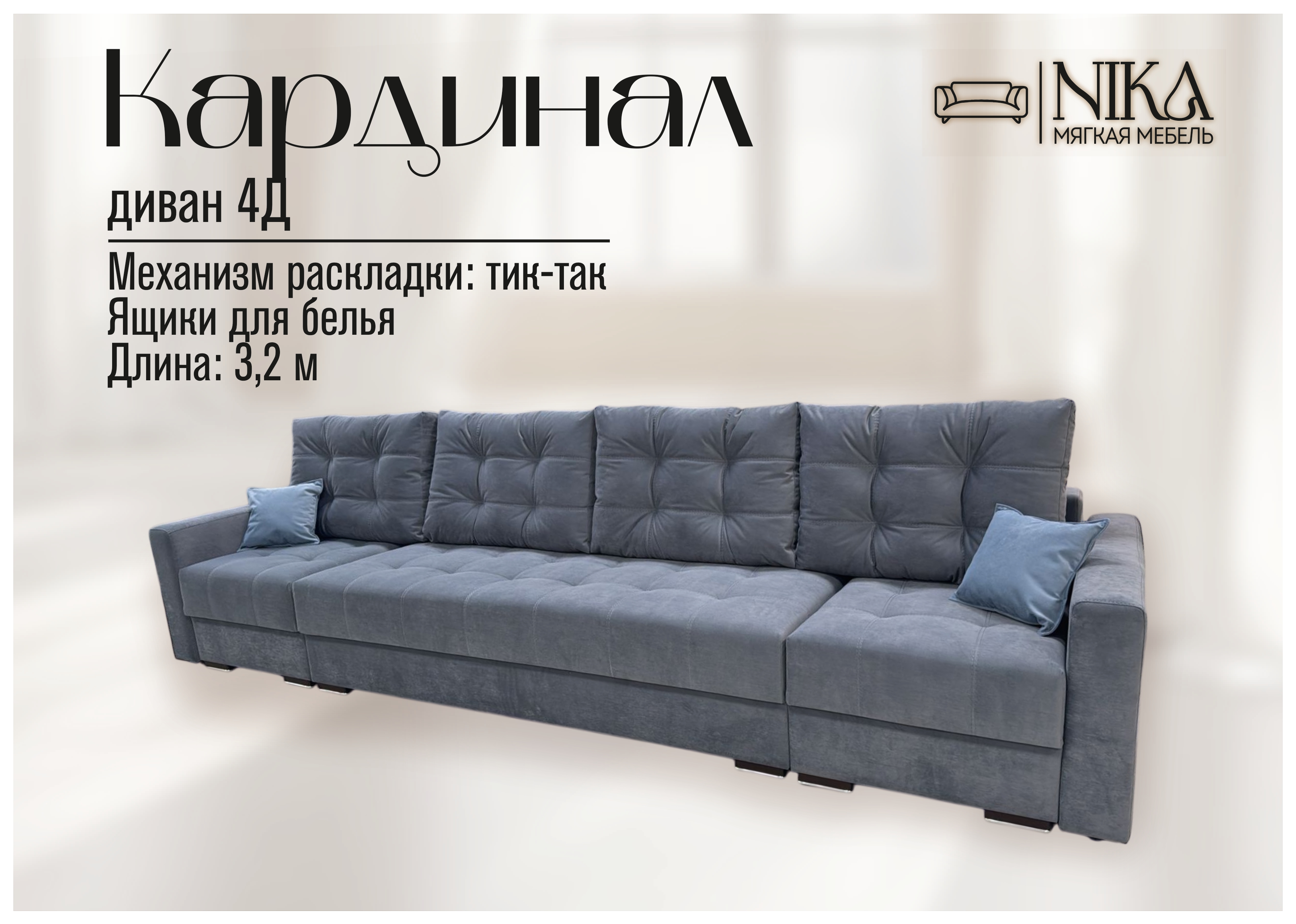 Мы, уверены в качестве - диван прослужит долго без скрипов и не приятных сюрпризов