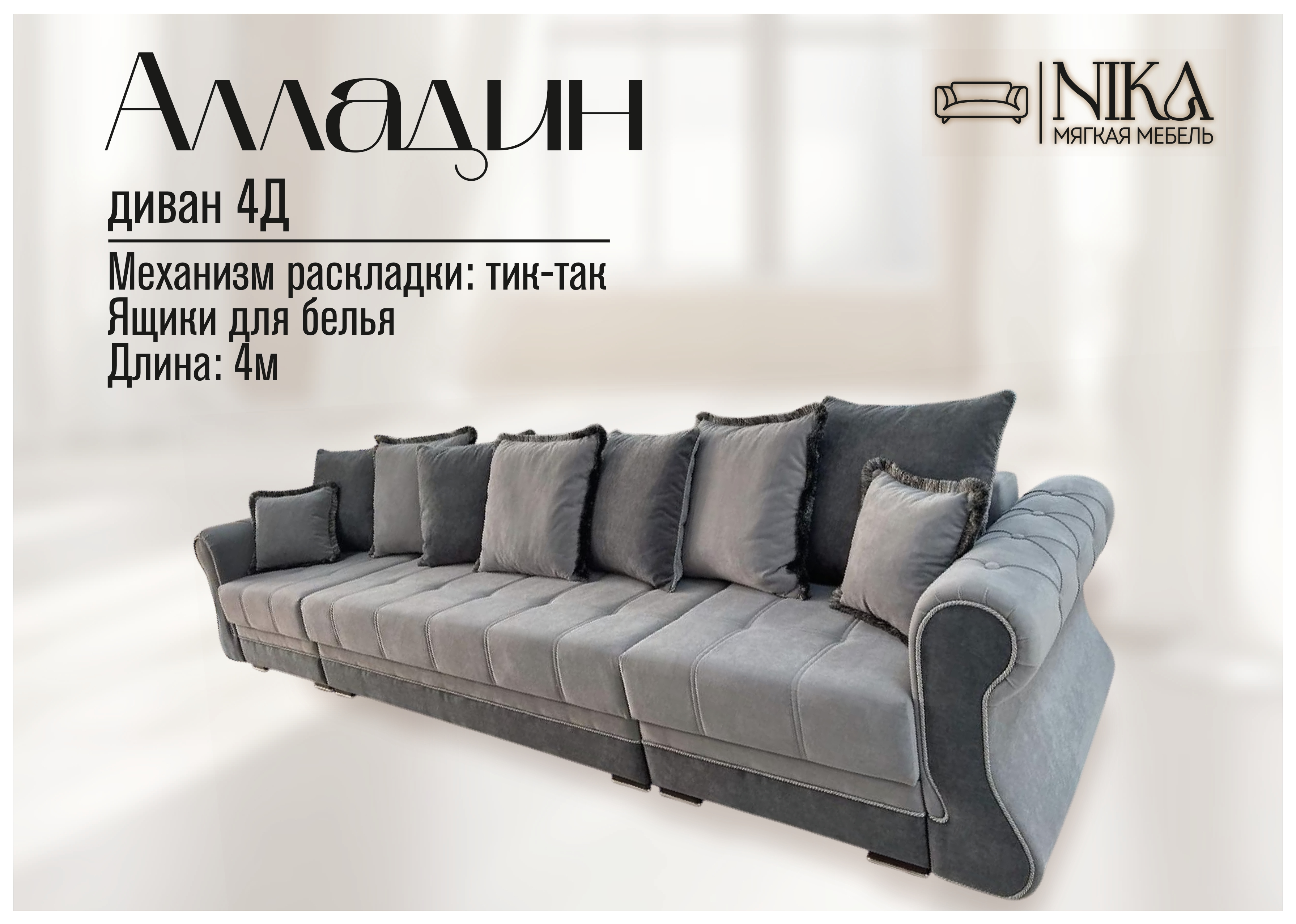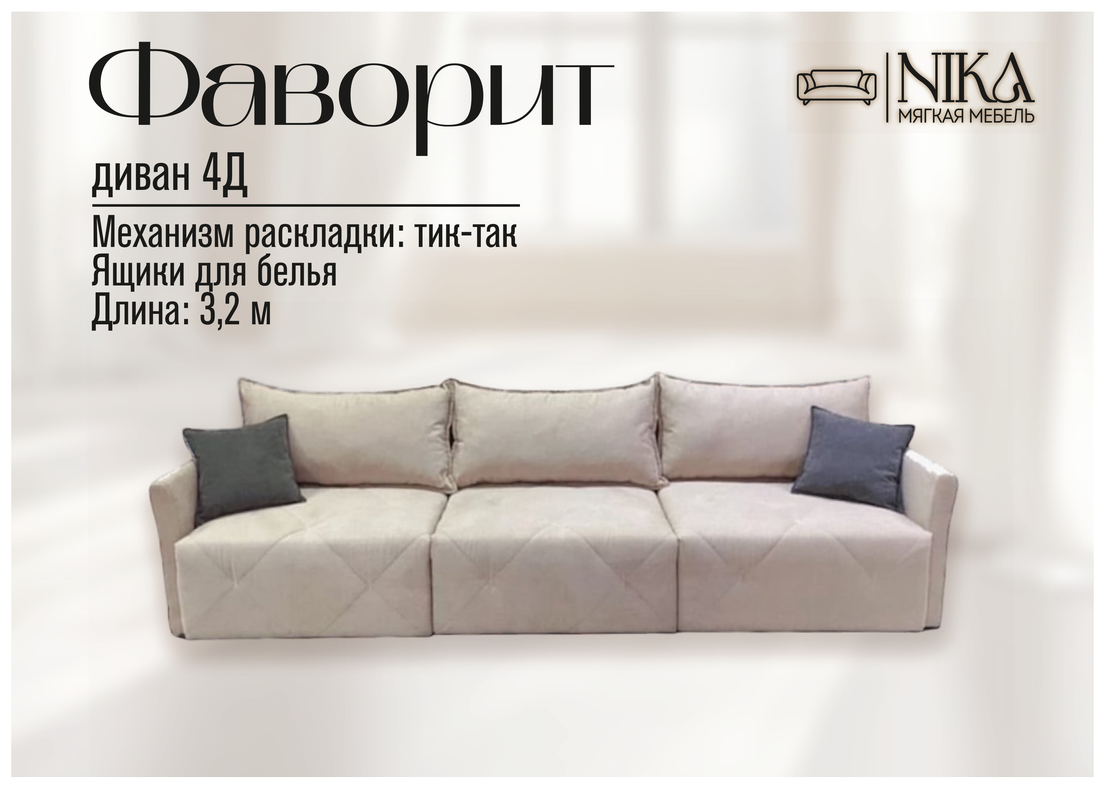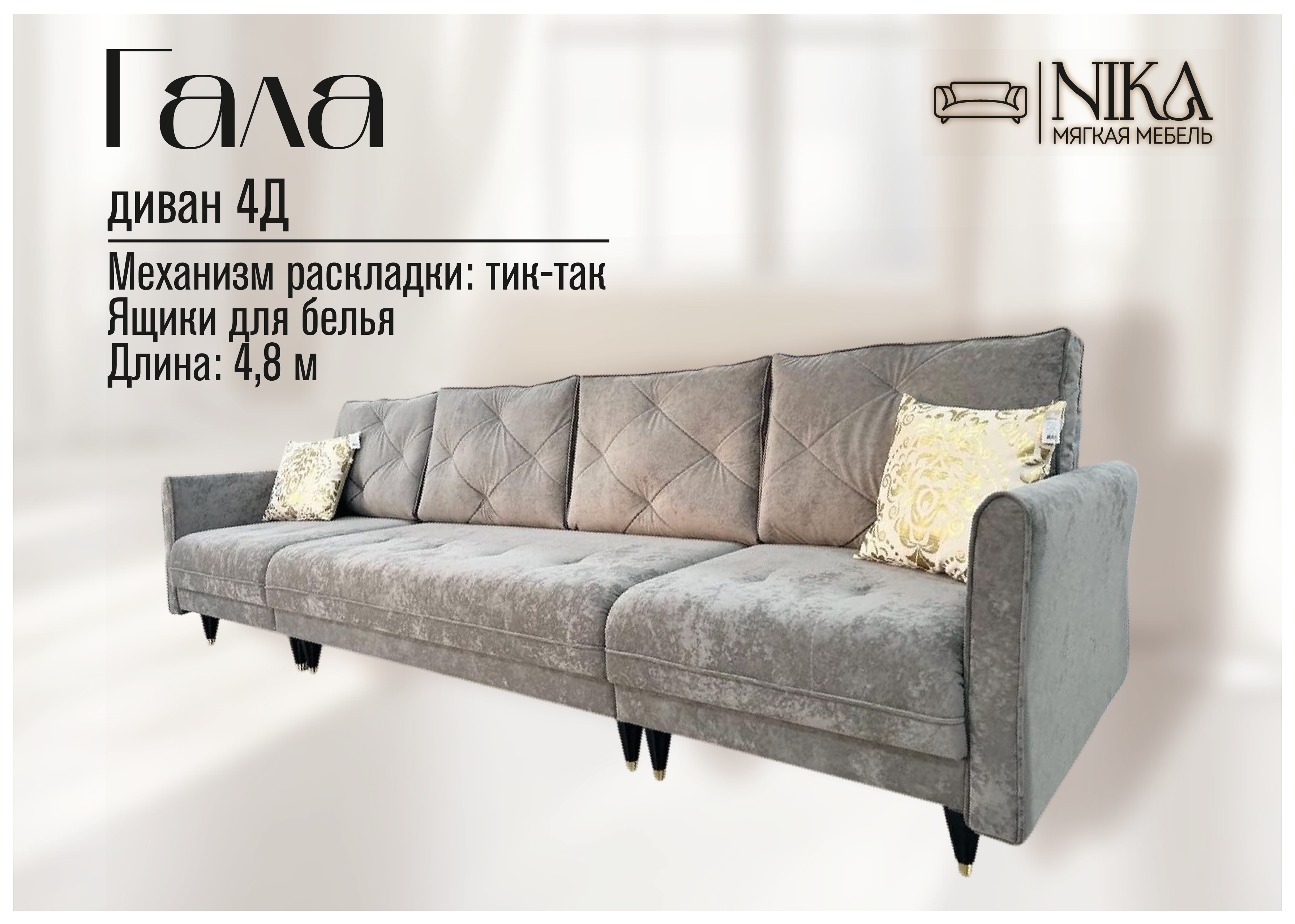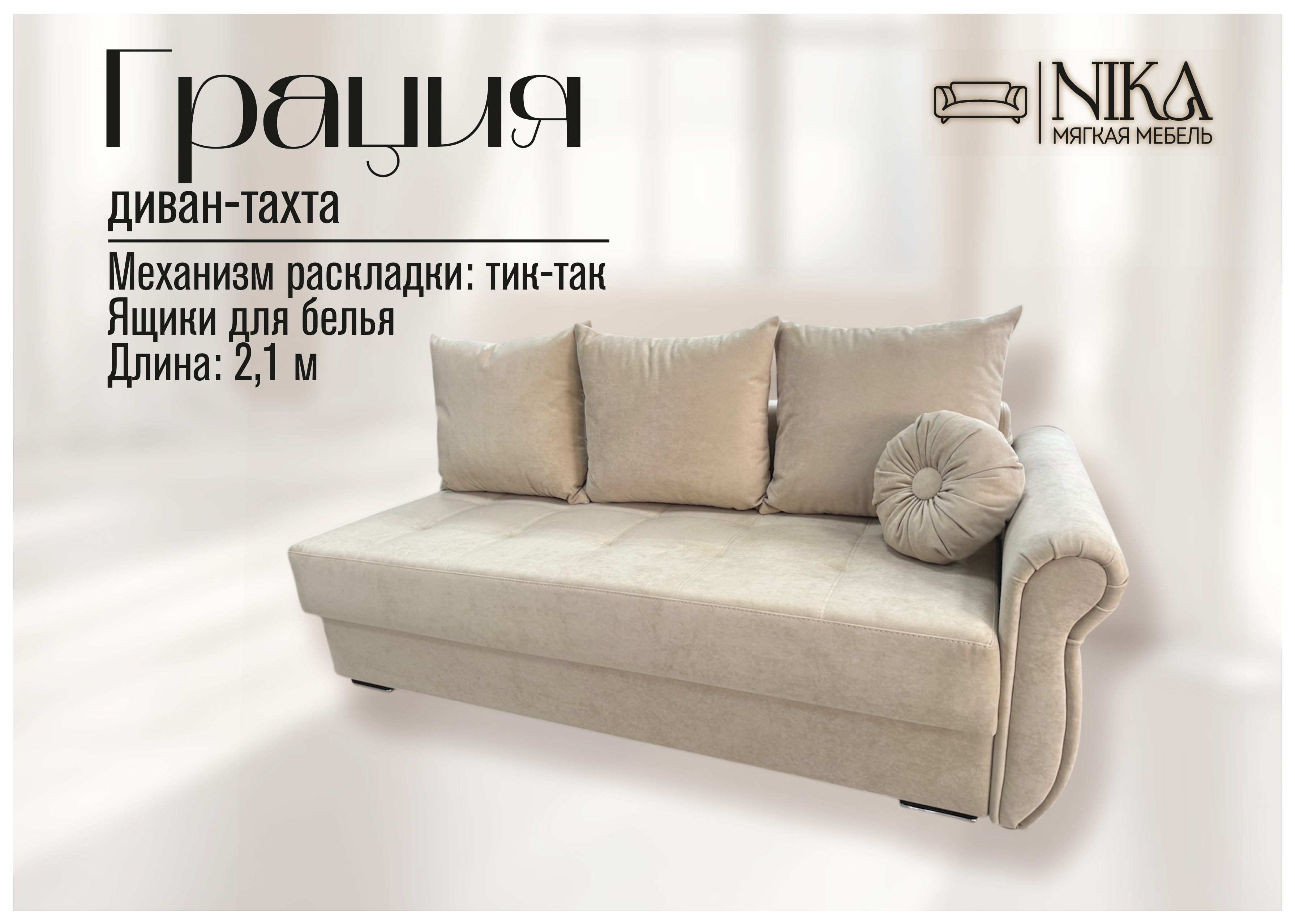 Мы, уверены в качестве - диван прослужит долго без скрипов и не приятных сюрпризов